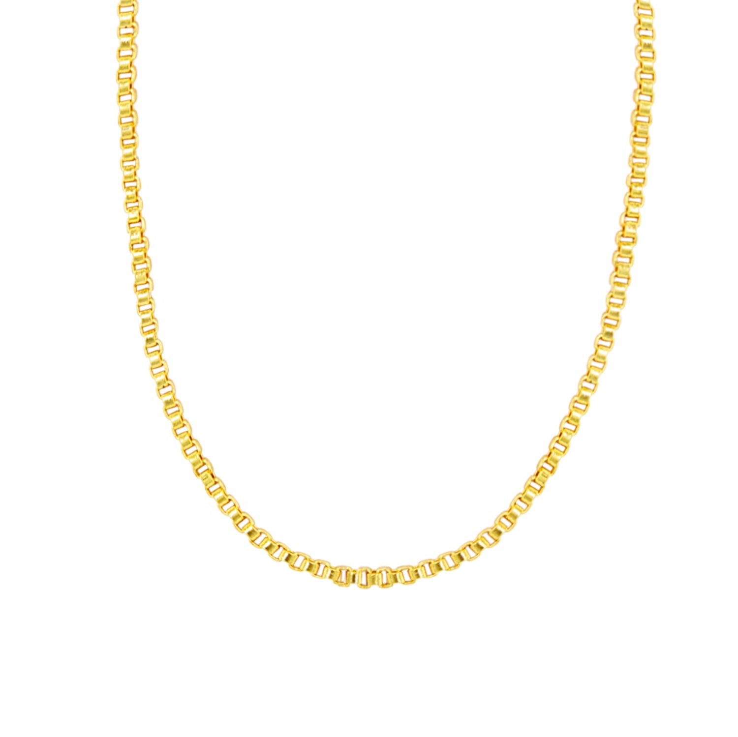 Amanda Blu Gold Box Charm Chain Necklace – 18K gold-dipped, adjustable length, ideal for personalized charm additions. Available at Be Charmed