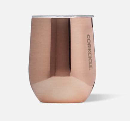 Enjoy drinks in style with the Corkcicle 12oz Stemless in Copper. This triple-insulated stainless steel tumbler keeps beverages cold for 9 hours or hot for 3. Includes a sliding, spill-resistant lid and soft-grip base—great for wine, cocktails, or coffee.
