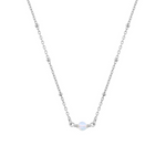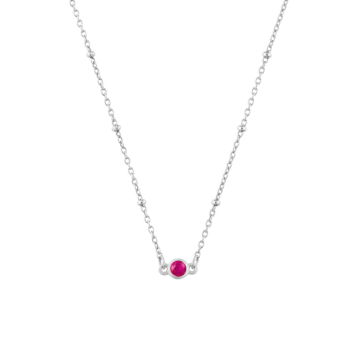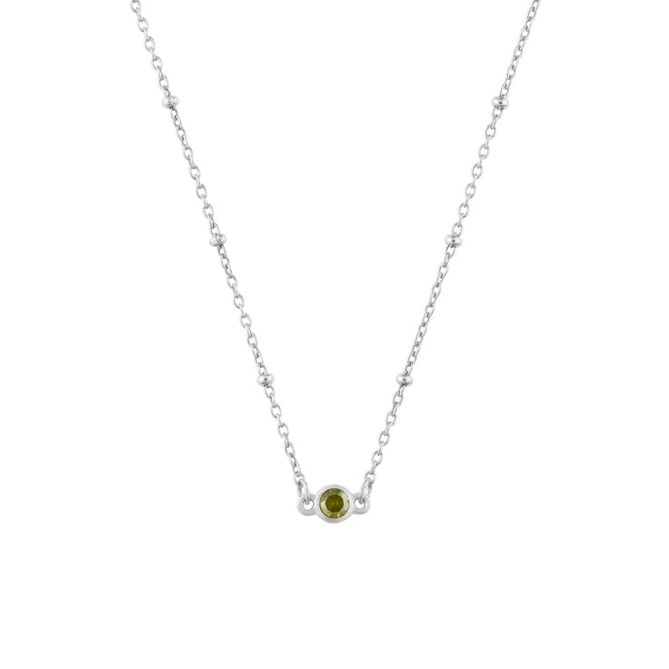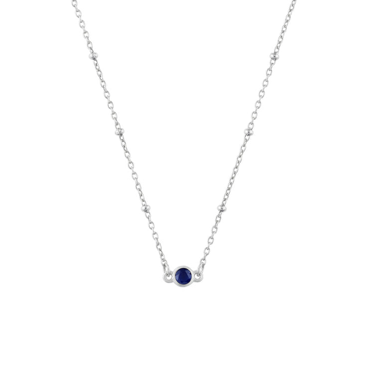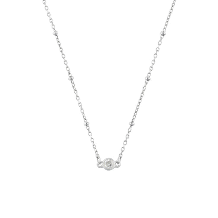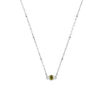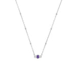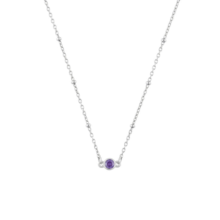 Dainty birth month-inspired stone on a sterling silver chain, 16” length.