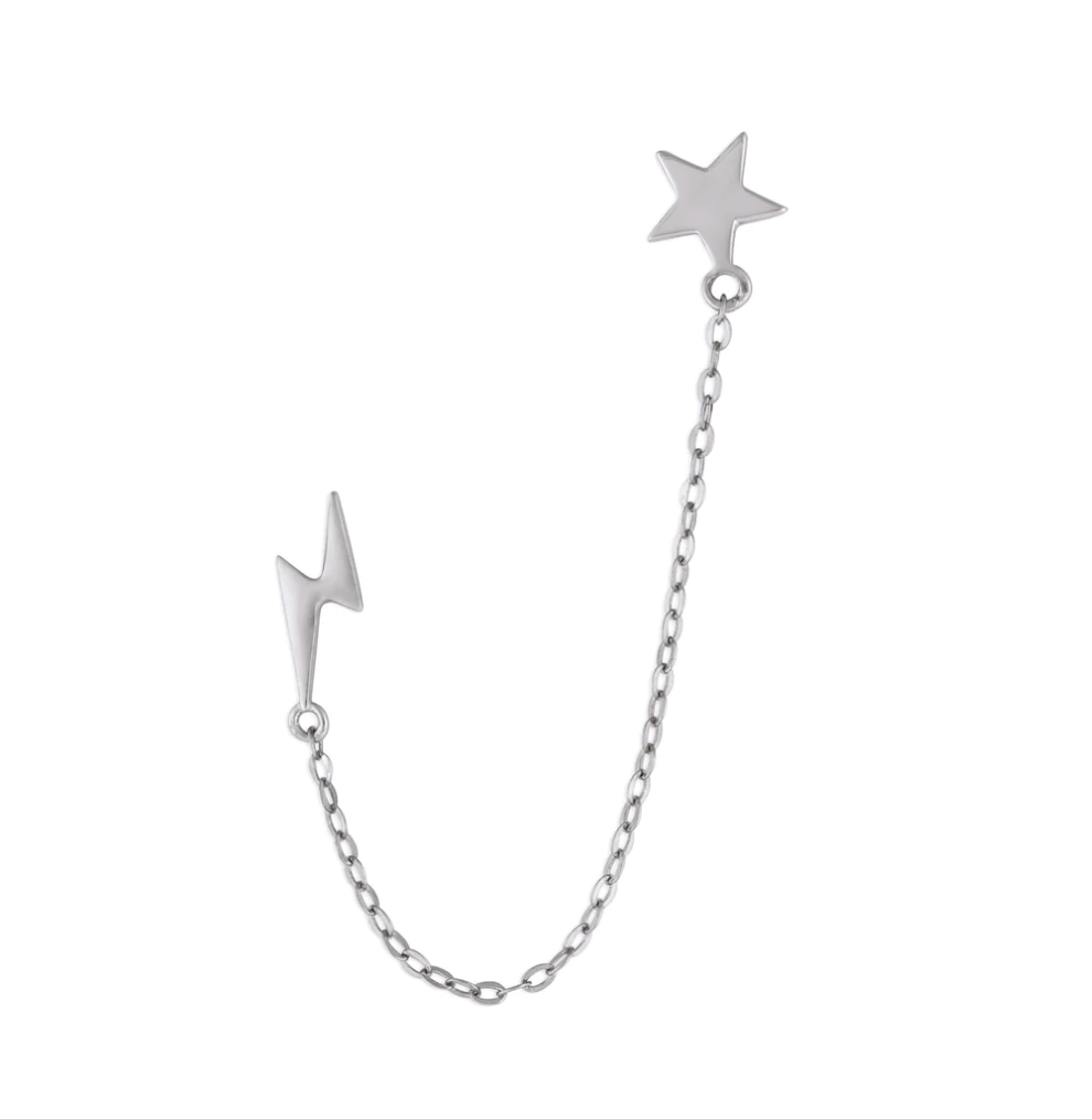 FYB - Earrings Star & Lightning Chain Studs Silver
