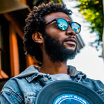 Hipster-inspired round blue lens sunglasses worth rambling about. Fashionable black retro round frames meet functional polarized lenses with/ UV400 protection. Go ahead and get sweaty– the special grip coating and snug, lightweight fit means they won’t slip or bounce.