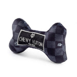Introducing the Black Checker Chewy Vuiton Bone, the must-have plush dog toy for pet owners.