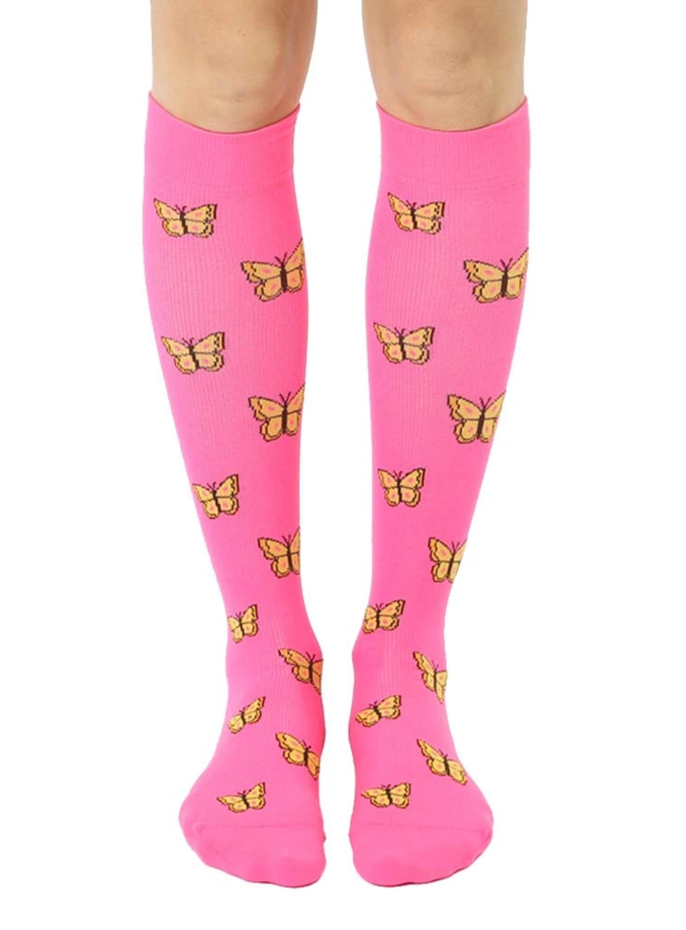Living Royal Compression Knee High Socks - Pink Butterfly