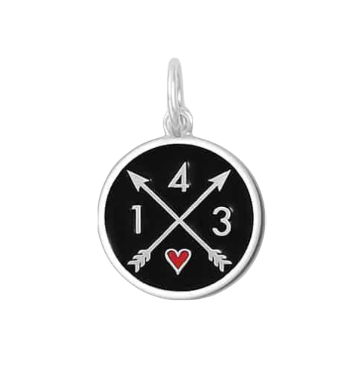 Black Lola 143 I Love You pendant featuring symbolic numeric message expressing love and connection, meaningful jewelry gift, Available at Be Charmed