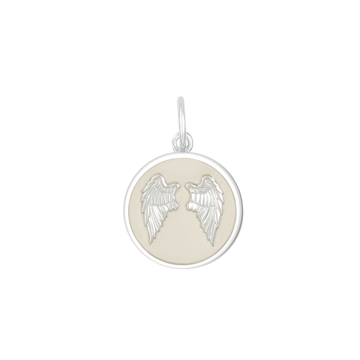 Ivory Lola angel wings fly pendant symbolizing love, protection, and remembrance by Be Charmed. Available at Be Charmed