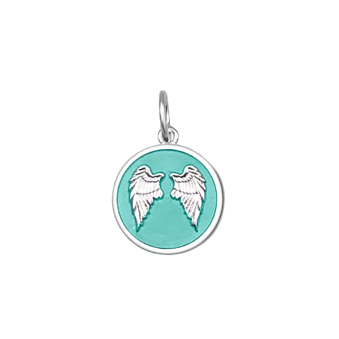 Seafoam Lola angel wings fly pendant symbolizing love, protection, and remembrance by Be Charmed. Available at Be Charmed