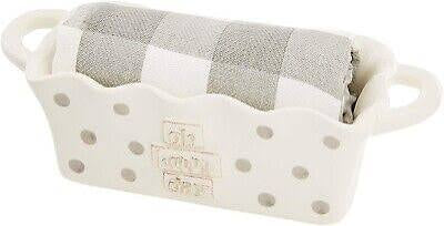 2-piece set. Hand-painted ceramic loaf baker with scallop rim, side handles and embossed sentiment tag arrives with cotton hand towel. Design might vary.