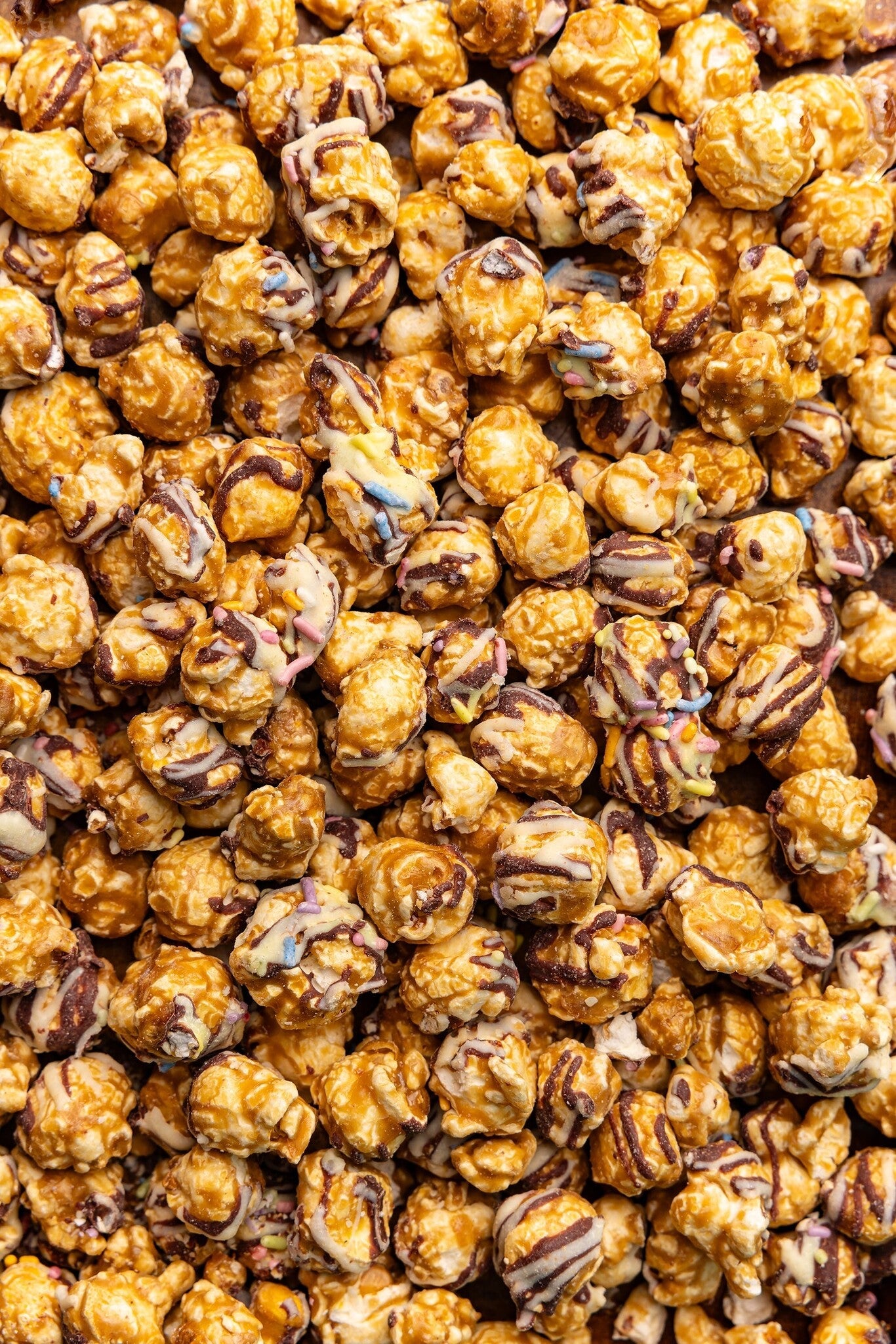 Our famous Salted Caramel popcorn drizzled with white and dark craft Chocolate from French Broad Chocolate – and no celebration is complete without sprinkles. It's a party in a bag!