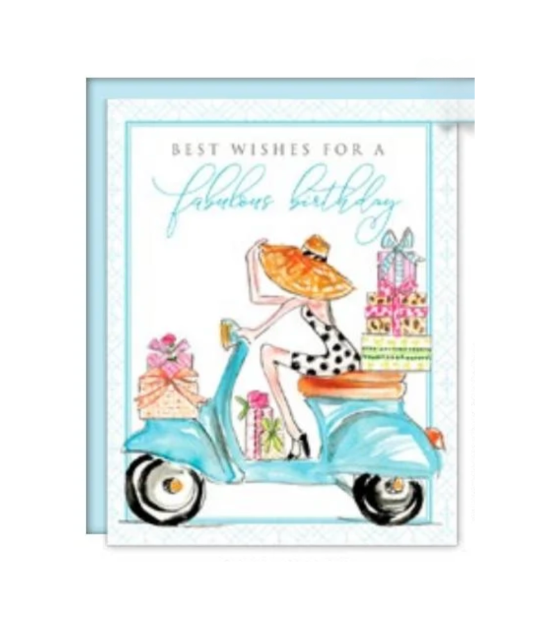Rosanne Beck - Birthday Card - Birthday Fashionista on a Scooter