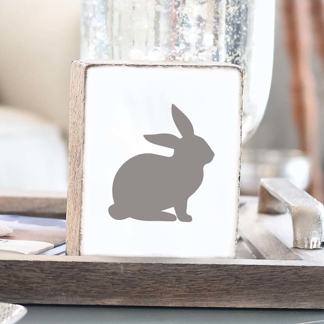 The Bunny Decorative Wooden Block adds flair as a wooden shelf sitter, tabletop or mantel decoration.