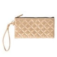 Scout Gold Quilted Kate wristlet wallet with detachable strap and zip closure – available at Be Charmed